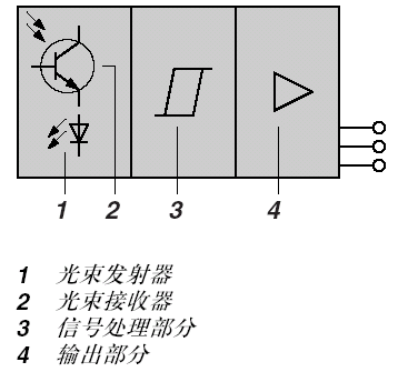 当物体进入发射光束时,会影响光进入接受器的光强,接受器光强减小到一定程度,会使信号处理部分工作,输出一定的电气信号。