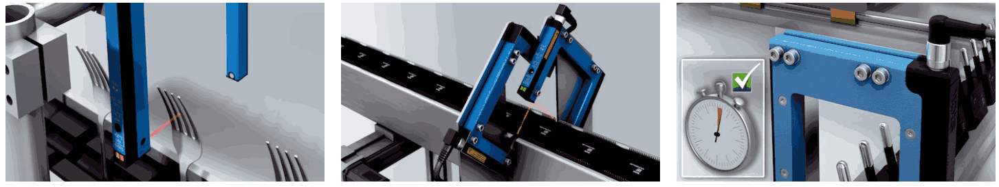 槽形传感器的发射器和接收器综合在一个外壳内,因此不需要耗费时间对准。发射器和接收器相互理想对准。这样可保证高过程稳定性。