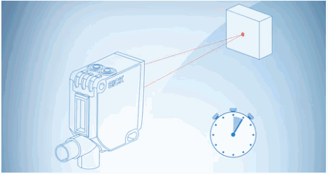 在光学飞行时间测量中,传感器与物体之间的距离是由传感器发射光脉冲(激光二极管、LED、...)到光脉冲反射回接收单元之间的测量时间得出的。