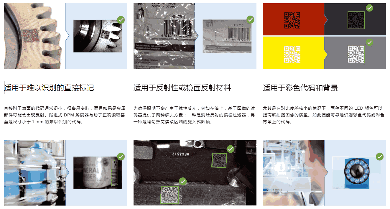 在要求苛刻的应用中,它们可以读取多种代码类型,例如一维码或二维码、DPM 代码和微型代码。